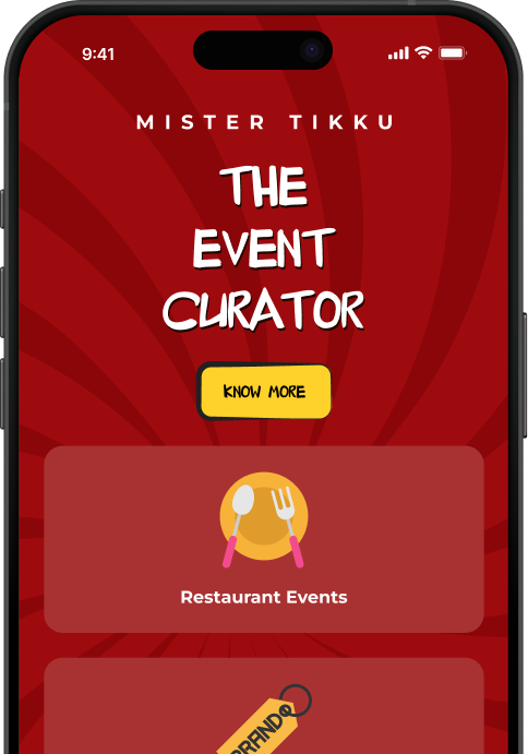 Studio Mesmer led the design and front-end development of both the Mister Tikku landing page and the interactive game experience. The landing page was designed to clearly communicate the brand’s flavour-driven identity while making menus, locations, and key actions easy to access. Alongside this, we designed and developed Bhaag Tikku Bhaag, a browser-based game that translates the brand into a playful, interactive format. Each experience was given its own visual rhythm and interaction logic, while shared typography, colour, and character design ensured consistency across touchpoints.