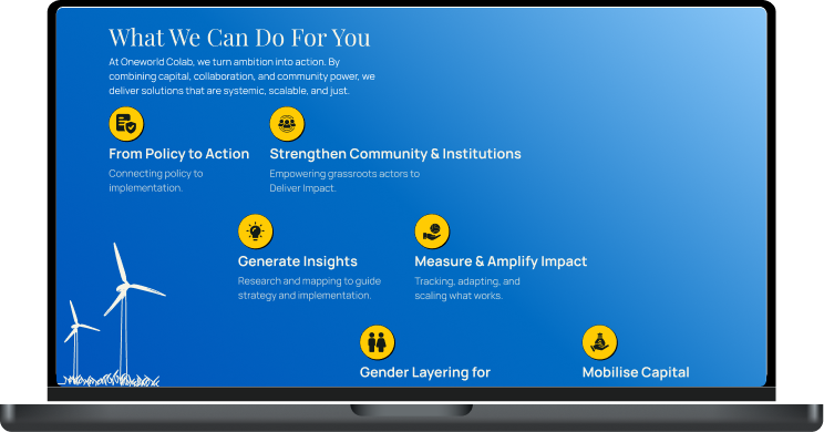 OneWorld Colab’s work spans climate, gender, capital, and community systems—but its digital presence didn’t yet reflect the clarity or depth of that mission.